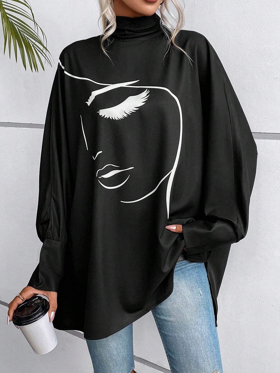 Bedrucktes Rollkragen-Oberteil mit künstlerischem Flair