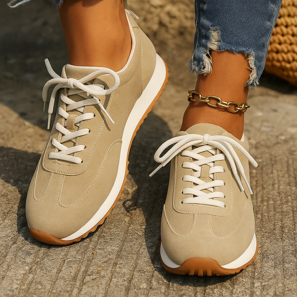 Die Damen Schnüren Sneaker bieten entspannten Tragekomfort und ein zeitloses Design. Mit ihrer flexiblen Sohle und dem unkomplizierten Stil passen sie sich mühelos an verschiedenste Alltagsoutfits an. Ideal für unterwegs, beim Bummeln oder in der Freizeit.
