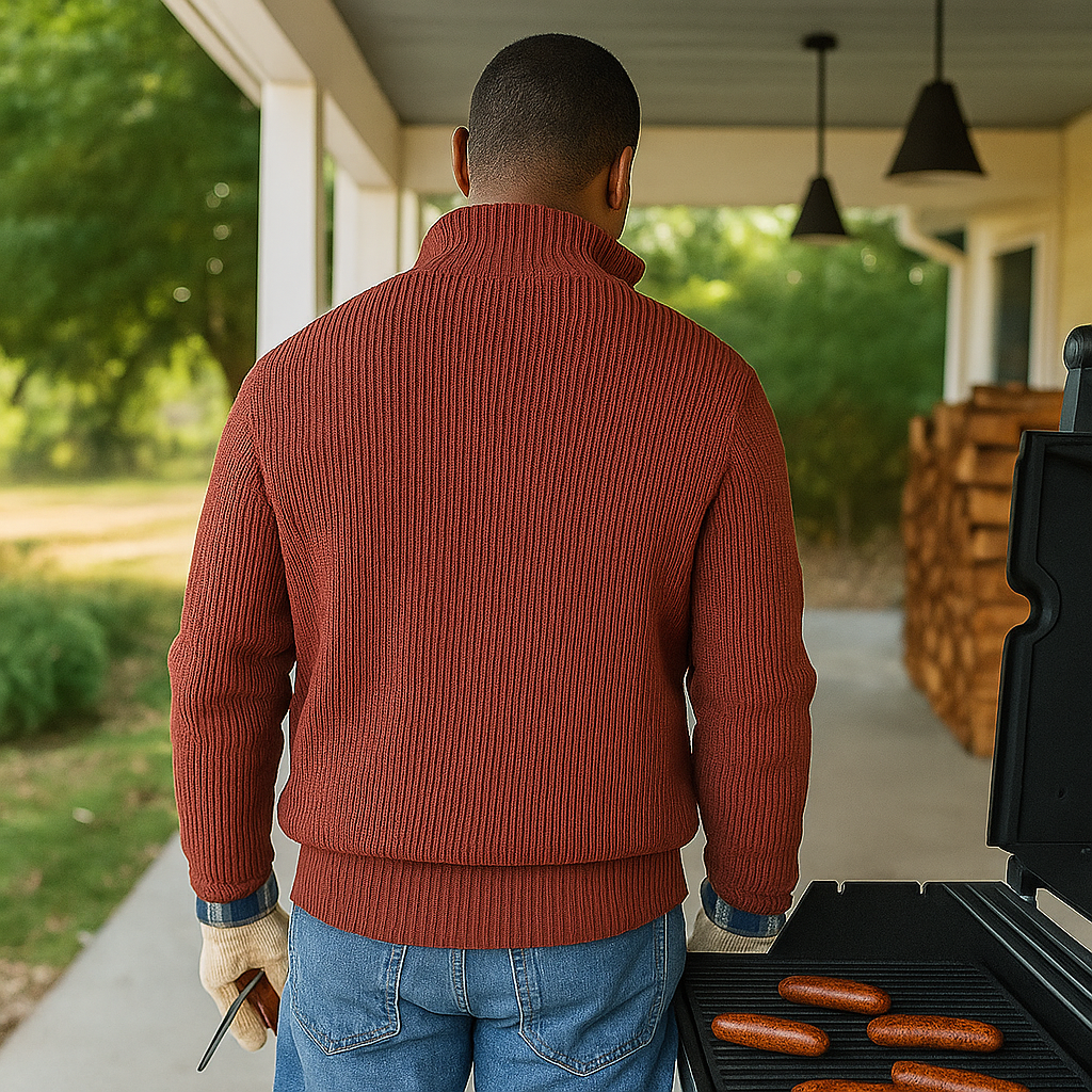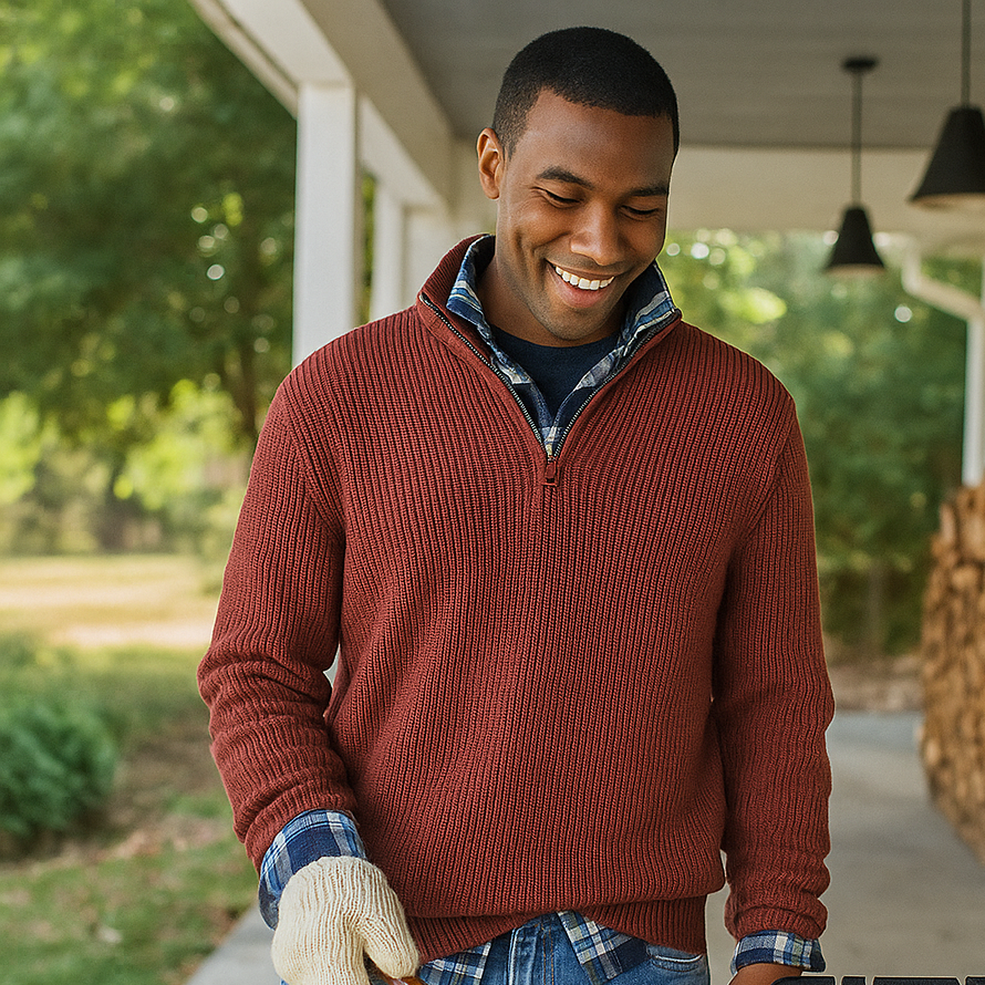 Der Herren Strickpullover mit Reißverschluss kombiniert klassischen Stil mit praktischen Details – ideal für kühle Tage und vielseitige Outfits. Der dezente Zipper sorgt für ein modernes Element und ermöglicht ein angenehmes Tragegefühl im Alltag.