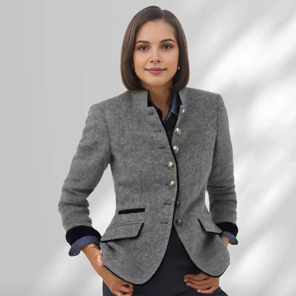 Der Damen Formell Blazer mit Stehkragen verbindet klassisches Design mit moderner Eleganz – ideal für Büro, Events oder stilvolle City-Looks. Der klare Schnitt und die dezente Linienführung sorgen für eine souveräne Ausstrahlung. Eine vielseitige Wahl für anspruchsvolle Outfits mit Komfort.