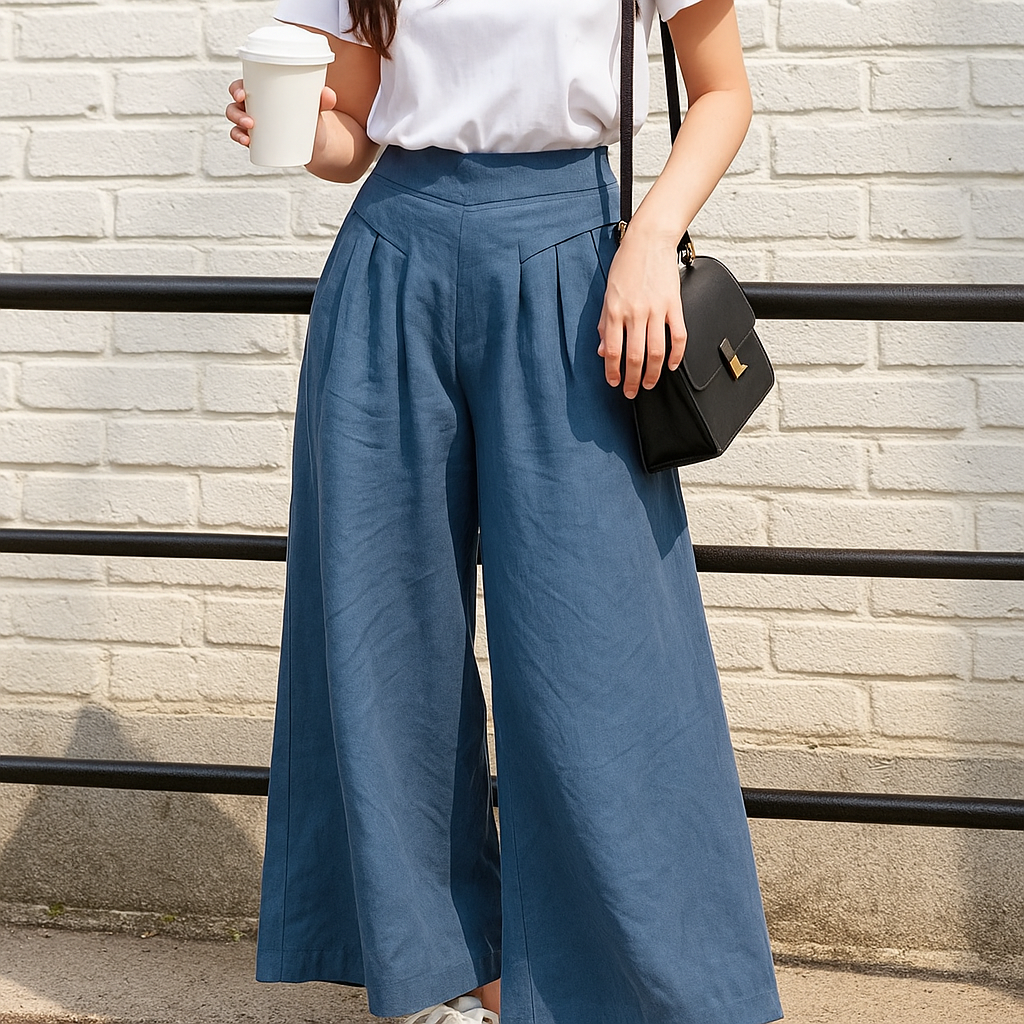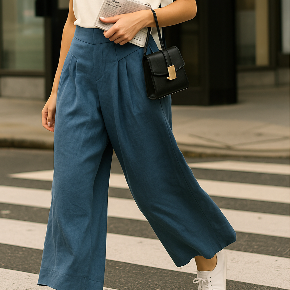 Te damskie spodnie o lekko szerokich nogawkach łączą stylowy design z luźnym krojem, idealnym na co dzień. Szeroki krój zapewnia przewiewność i nowoczesny wygląd – idealne do biura, na co dzień lub na specjalne okazje. Uniwersalne spodnie do stylowych stylizacji.