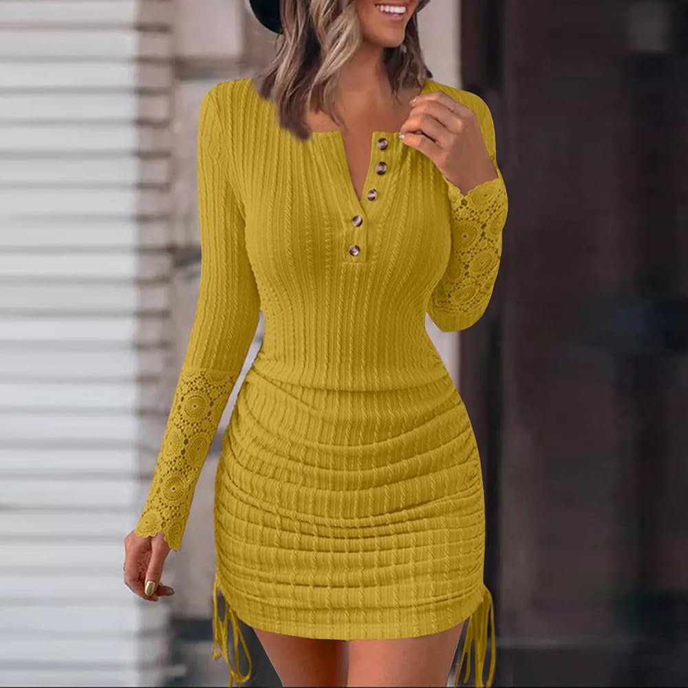 Damska dzianinowa sukienka z długim rękawem i guzikami