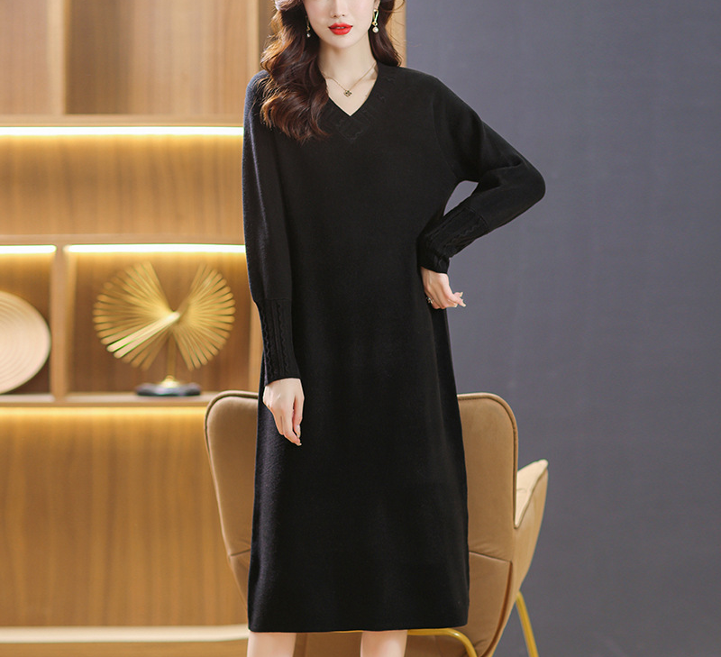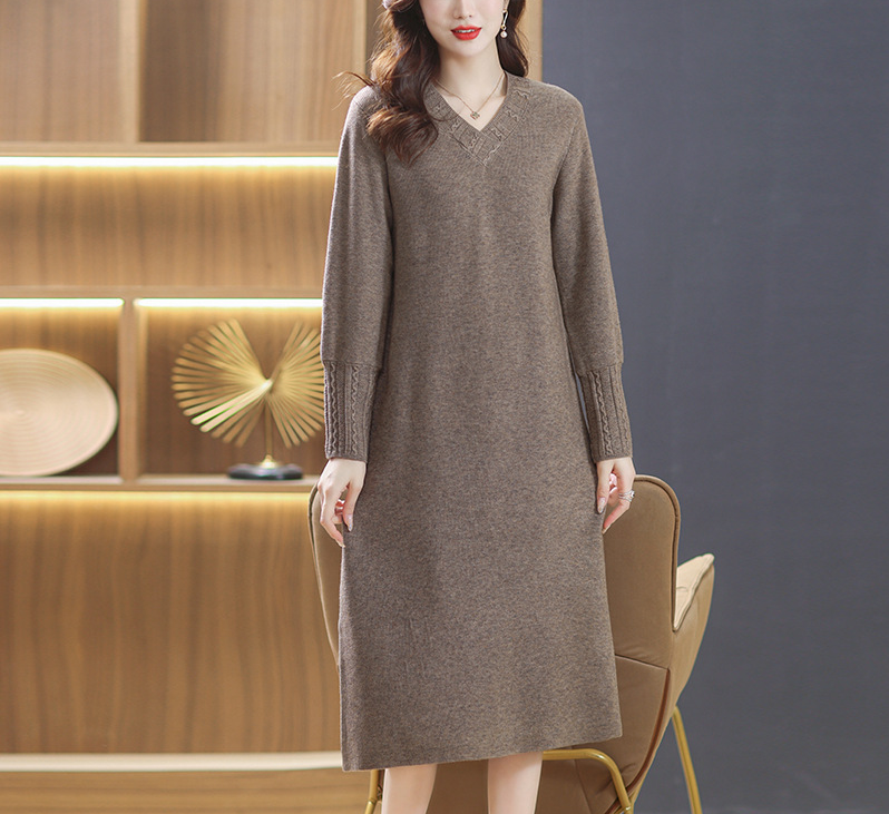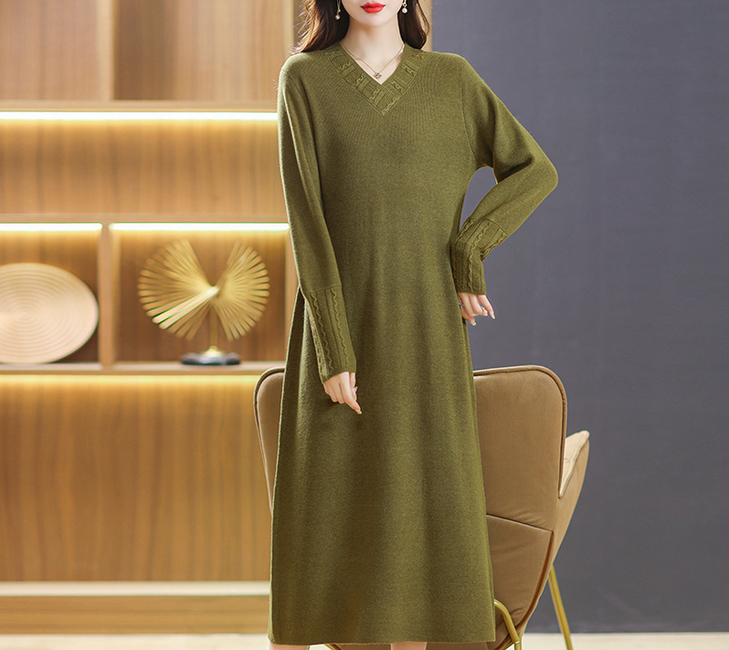 Ta damska dzianinowa sukienka midi z dekoltem w serek zachwyca minimalistycznym krojem. Dekolt w serek subtelnie podkreśla sylwetkę, a długość midi podkreśla zrównoważone linie. Dopasowany krój subtelnie podkreśla sylwetkę i jest uniwersalny. Subtelne detale dopełniają look i podkreślają ponadczasowy charakter sukienki.