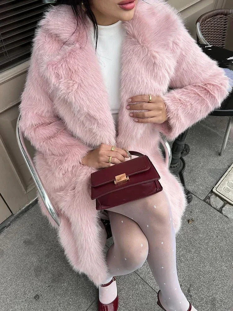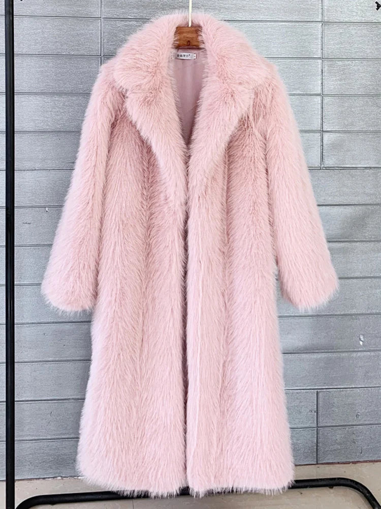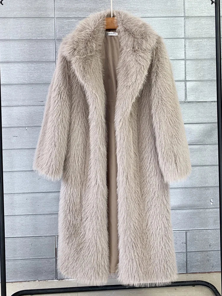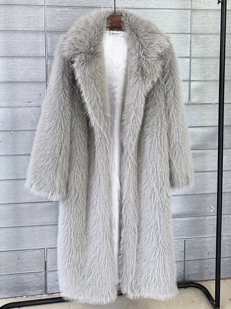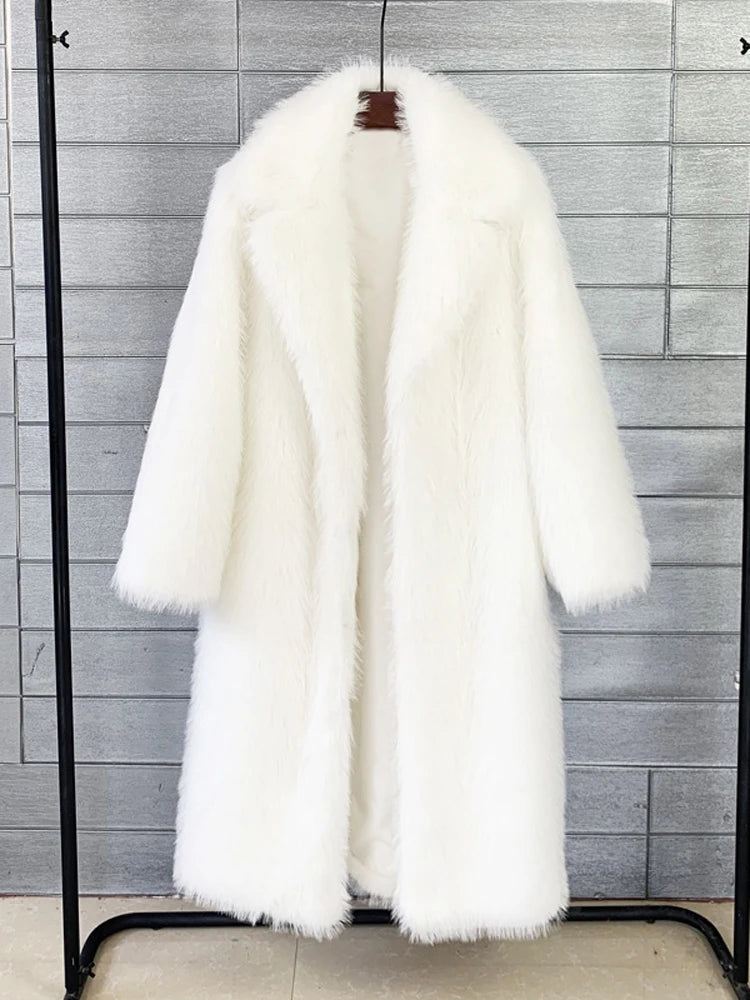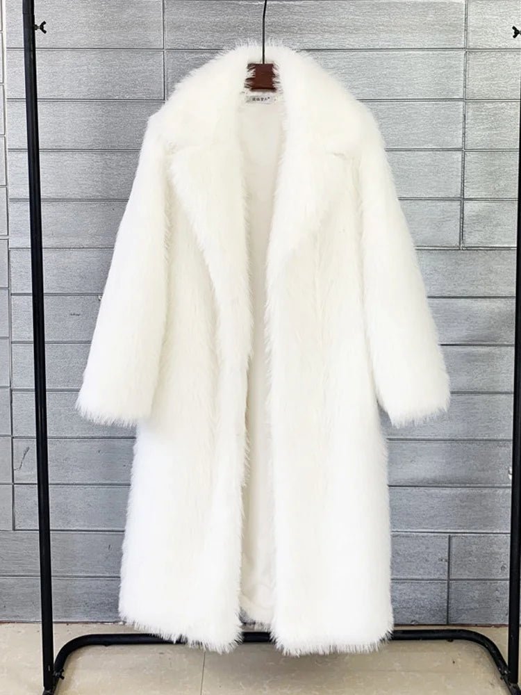 Ten długi damski płaszcz futrzany łączy klasyczną elegancję z wygodą. Idealny na specjalne okazje lub do stylowych stylizacji na co dzień, doda Twojej stylizacji charakteru i luksusowego akcentu.
