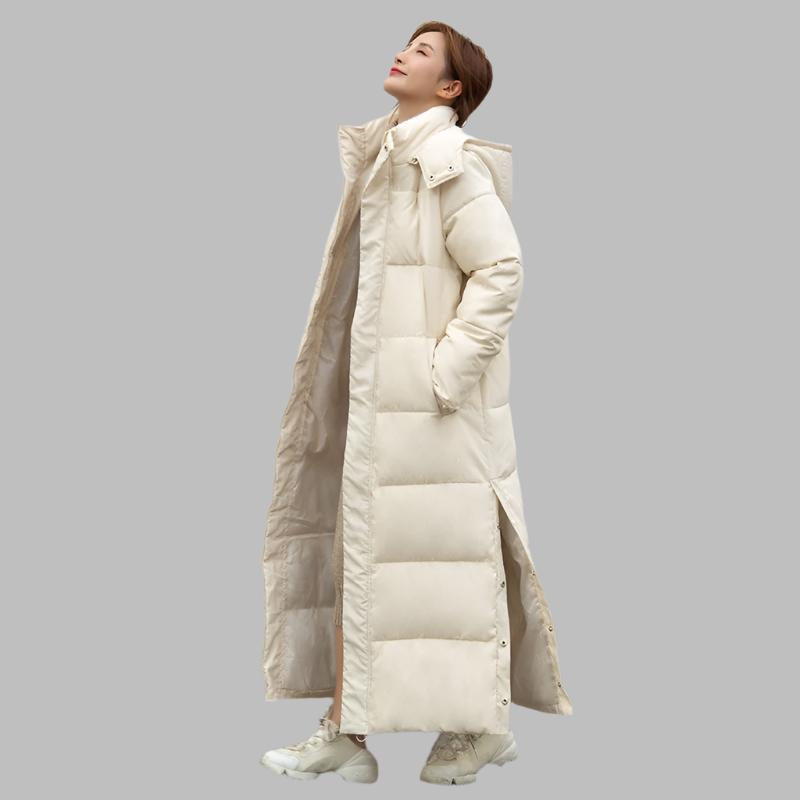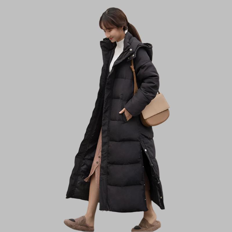 Damski zimowy płaszcz puchowy z długim rękawem prezentuje się z równomiernie pikowaną powierzchnią i wyraźnie ustrukturyzowaną całością. Dłuższy krój zapewnia ciągłość i zrównoważoną linię, która nadaje wygląd uporządkowany. Subtelne przejścia między pikowanymi sekcjami podkreślają spokojny design i nadają płaszczowi harmonijny wyraz. Boczne kieszenie są dyskretnie wkomponowane i wspierają klarowną strukturę. Projekt rezygnuje z przeładowanych detali i stawia na zredukowany, uporządkowany wygląd.