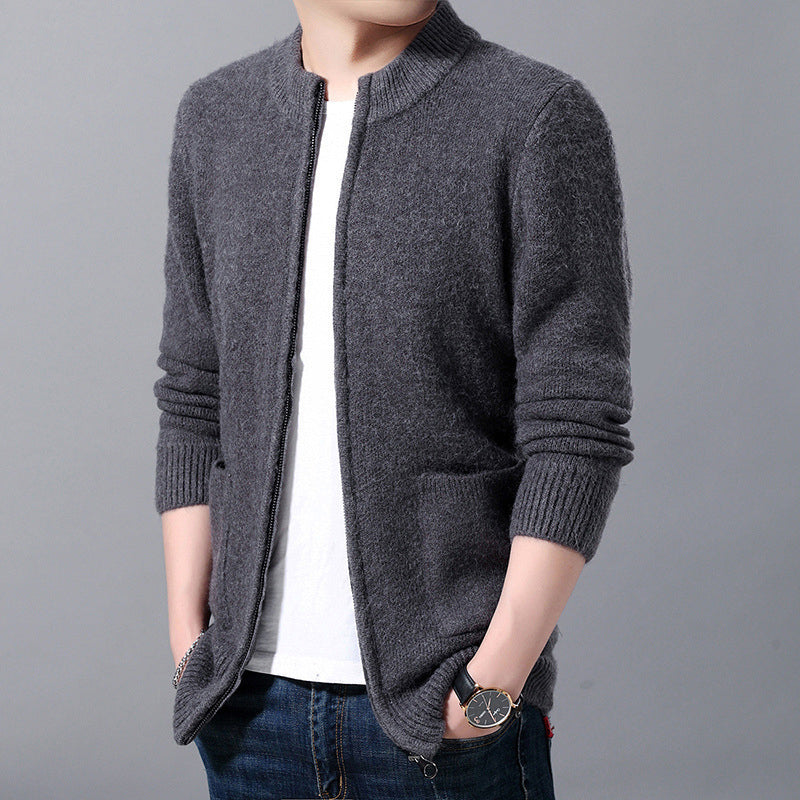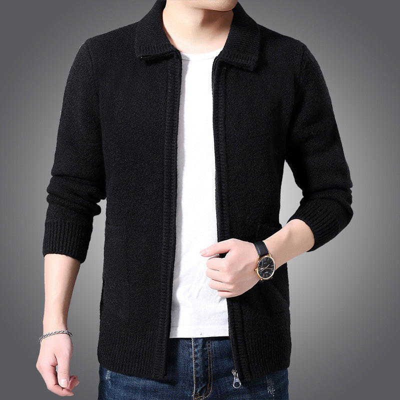 Ciepły kardigan męski z zamkiem błyskawicznym | z kołnierzykiem